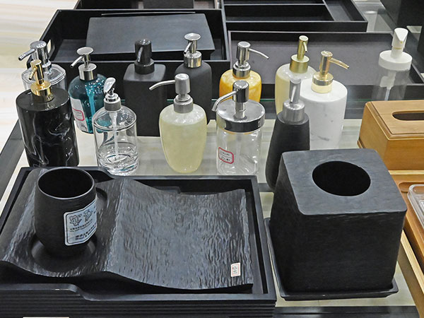 Blankets, carpets, curtains, anti slip mats, service guides, tissue boxes, trash cans, towel frames, beauty mirrors, flashlights, hangers, ashtrays, remote control racks, pens, notepads, envelopes, safes, hangers, clothes clips, keys, signage, etc.